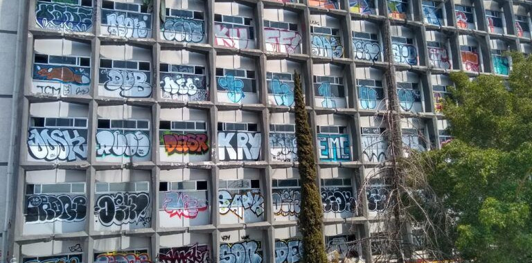 Durante un recorrido por la zona se contaron alrededor de 114 grafitis en la fachada que da a la calzada Ignacio Zaragoza.