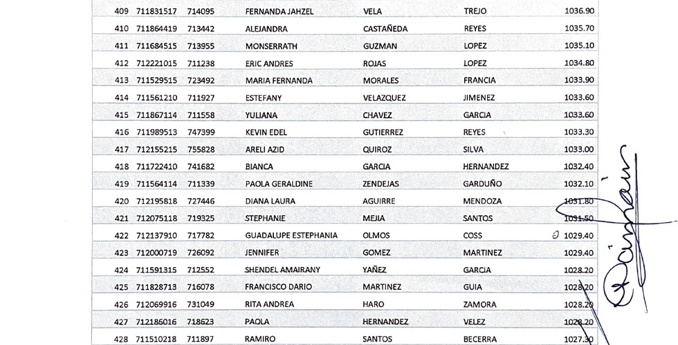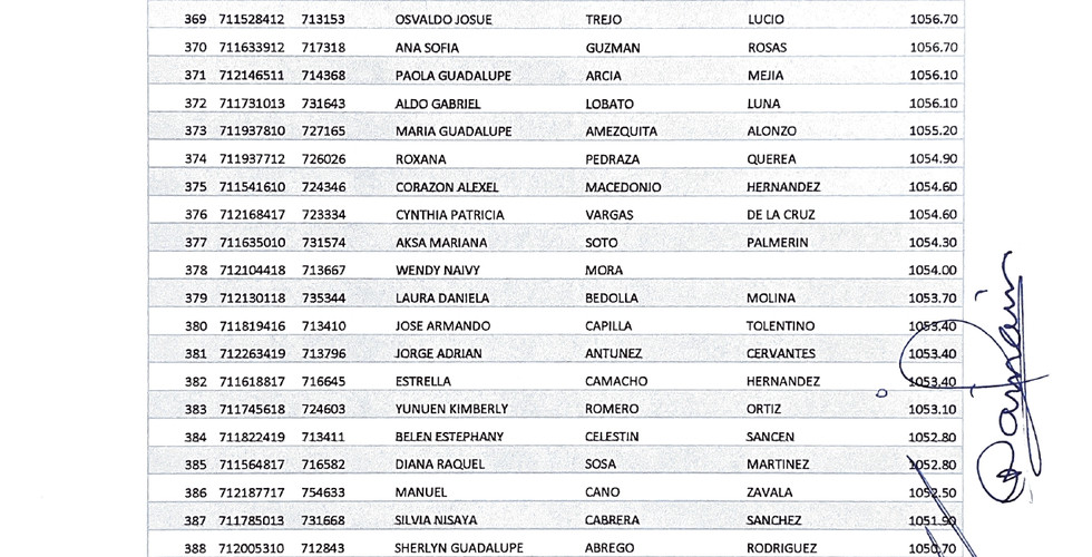 De este listado solo serán aceptados los primeros 700 aspirantes con mejor calificación.